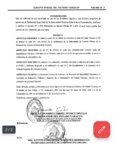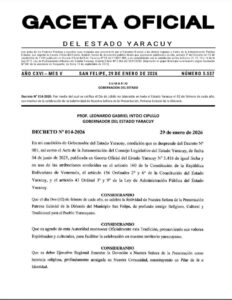 El Gobernador Leonardo Intoci, en Gaceta Oficial nro. 5.537, ratifica el 2 de febrero como Día de Júbilo no laborable en todo el Estado Yaracuy, con motivo de la celebración de la Solemnidad de Nuestra Señora de la Presentación, Patrona Eclesial de la Diócesis.